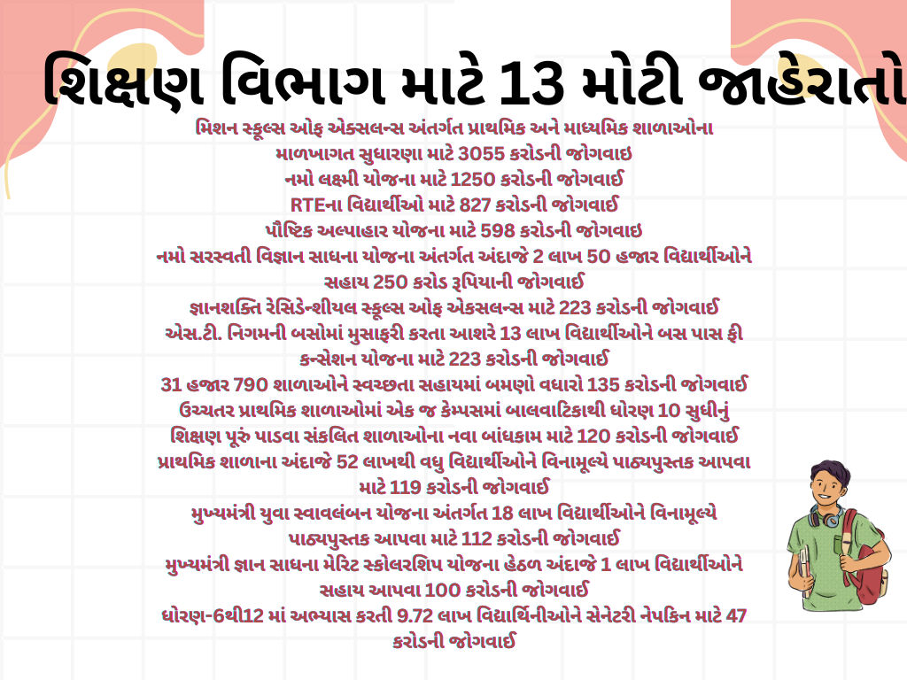 શિક્ષણ વિભાગ માટે 13 મોટી જાહેરાતો