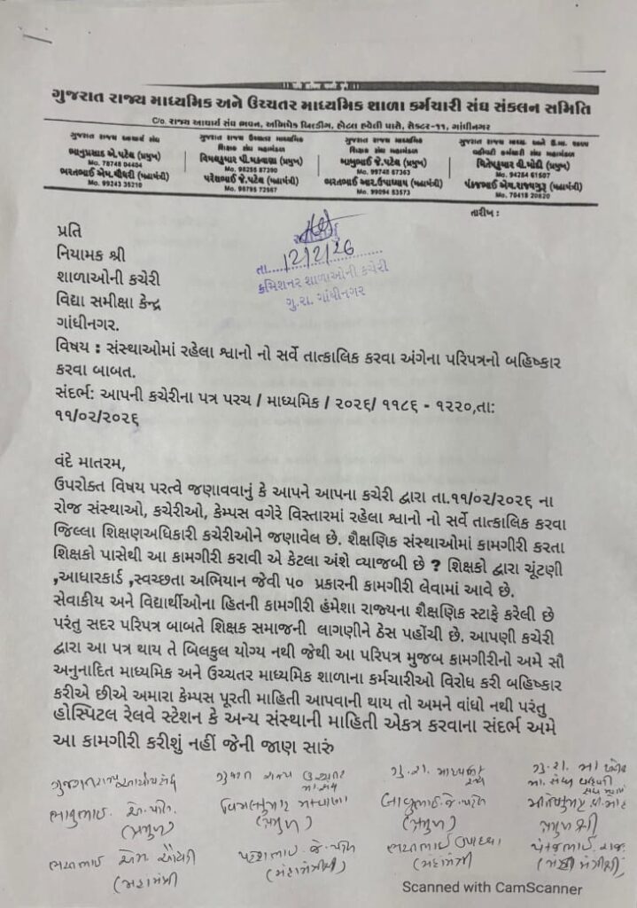શિક્ષકોને શિક્ષણ સિવાય શૌચાલય ગણવા, ભીડ ભેગી કરવા, ચૂંટણીના કામ, SIRની કામગીરી આપવામાં આવી છે, જેના કારણે શિક્ષણ પર ગંભીર અસર પડી છે. હવે શિક્ષકોને પોતાના વિસ્તારમાં શ્વાનની ગણતરી માટે આદેશ કરાયો છે જેથી વર્ગખંડમાં શિક્ષણ આપવાનો સમય મળશે નહીં, શું ગુજરાતમાં શિક્ષકો સિવાય આ કામગીરી માટે કોઈ છે જ નહીં? તાત્કાલિક પરિપત્રને રદ કરી દેવામાં આવે, કારણ કે રાજ્યના શિક્ષકો પાસે શિક્ષણ સિવાય 60 વધારાની કામગીરી છે.