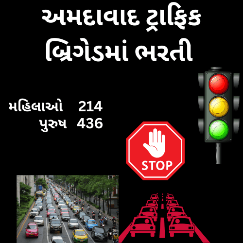 અમદાવાદ ટ્રાફિક બ્રિગેડમાં ભરતી માટે જાહેરાત બહાર પાડવામાં આવી છે. અમદાવાદ ટ્રાફિક ટ્રસ્ટ દ્વારા કુલ 650 જગ્યાઓ પર સેવક તથા સેવિકાની પસંદગી કરવામાં આવશે, જેમાં 214 મહિલાઓ અને 436 પુરુષ ઉમેદવારોનો સમાવેશ થાય છે.