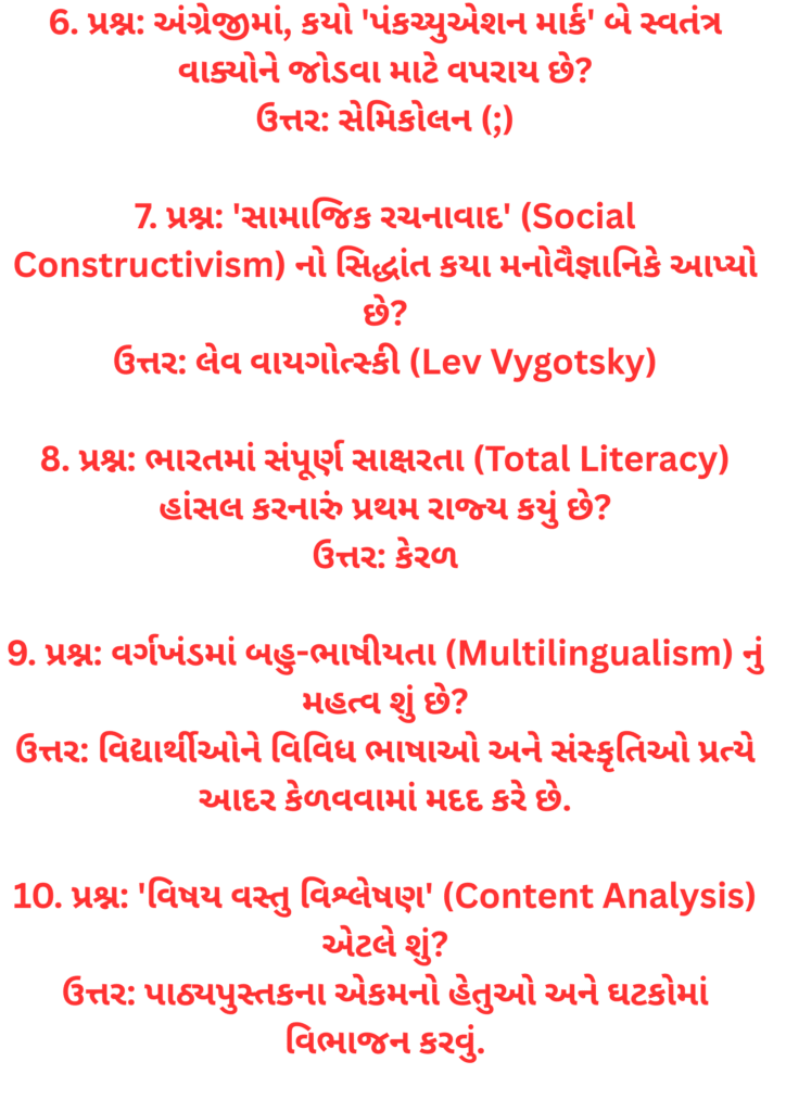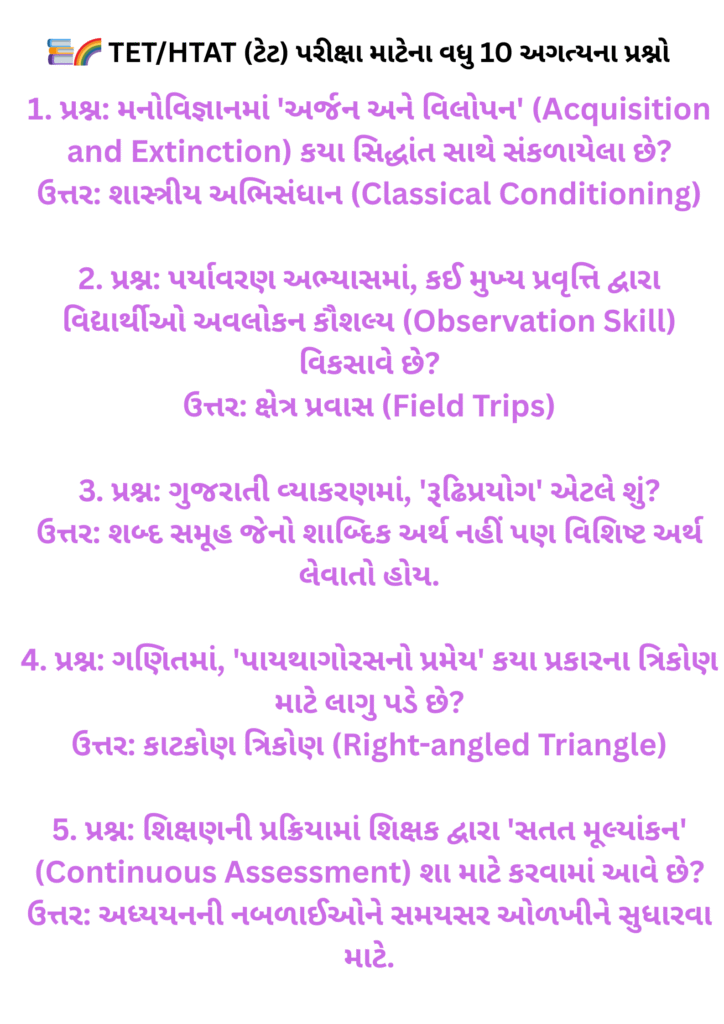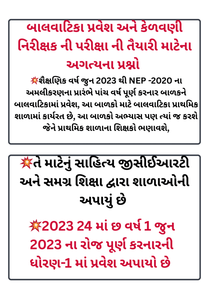 બાલવાટિકા પ્રવેશ અને કેળવણી નિરીક્ષક ની પરીક્ષા ની તૈયારી માટેના અગત્યના પ્રશ્નો