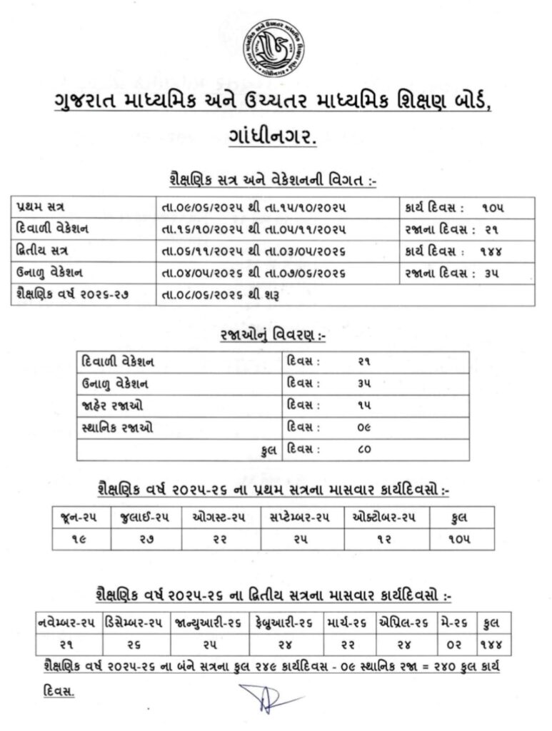 📅 વેકેશનનું શિડ્યુલ (ગુજરાત બોર્ડ મુજબ):