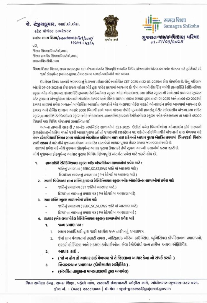 CET (Common Entrance Test) Gujarat રાજ્ય સરકાર દ્વારા લેવાતી એક મહત્વપૂર્ણ પરીક્ષા છે, જેનો હેતુ વિદ્યાર્થીઓને ઉચ્ચ શિક્ષણ માટે સમાન, સરળ અને પારદર્શક પ્રવેશ પ્રક્રિયા આપવાનો છે.