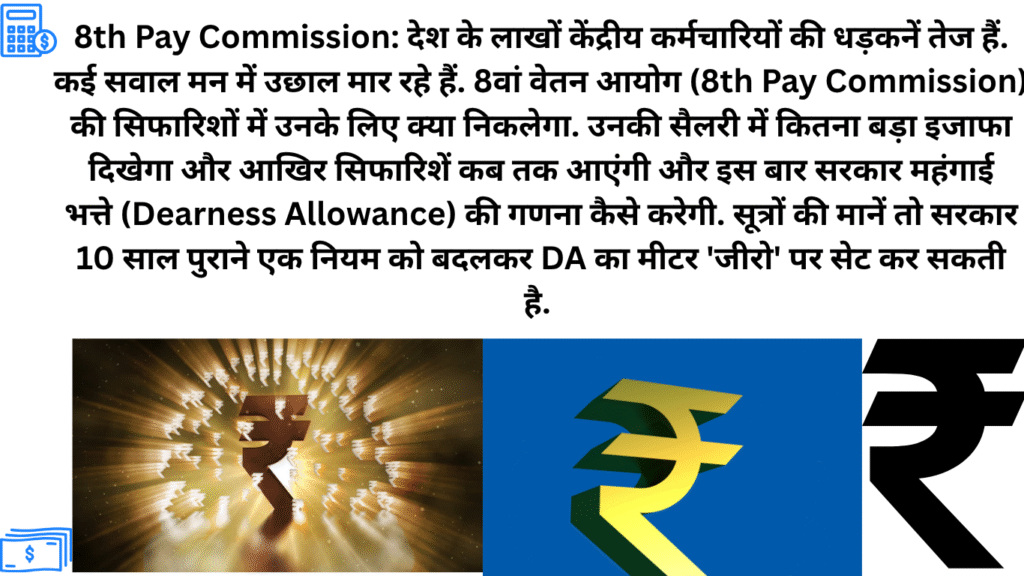 8th Pay Commission: Millions of central employees of the country are beating fast. Many questions are bouncing in the mind. What will come out for them in the recommendations of the 8th Pay Commission. How much increase will be seen in their salary and how long will the recommendations come and how will the government calculate Dearness Allowance this time. According to sources, the government may change a 10-year-old rule to set the DA meter at ‘zero’.