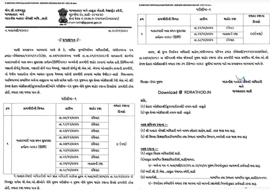 BLO ને રજાના દિવસોમાં કરેલ SIR કામગીરી ની વળતર રજાઓ.. કેટલી રજાઓ મળે…? જોઈ લો