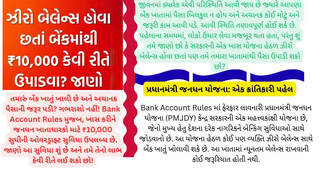 Pradhan Mantri Jan Dhan Yojana (PMJDY) is an ambitious scheme of the Central Government, which brings changes in Bank Account Rules, the main objective of which is to connect every citizen of the country with banking facilities. Under this scheme, any person can open a bank account with zero balance. There is no requirement to maintain a minimum balance in this account.