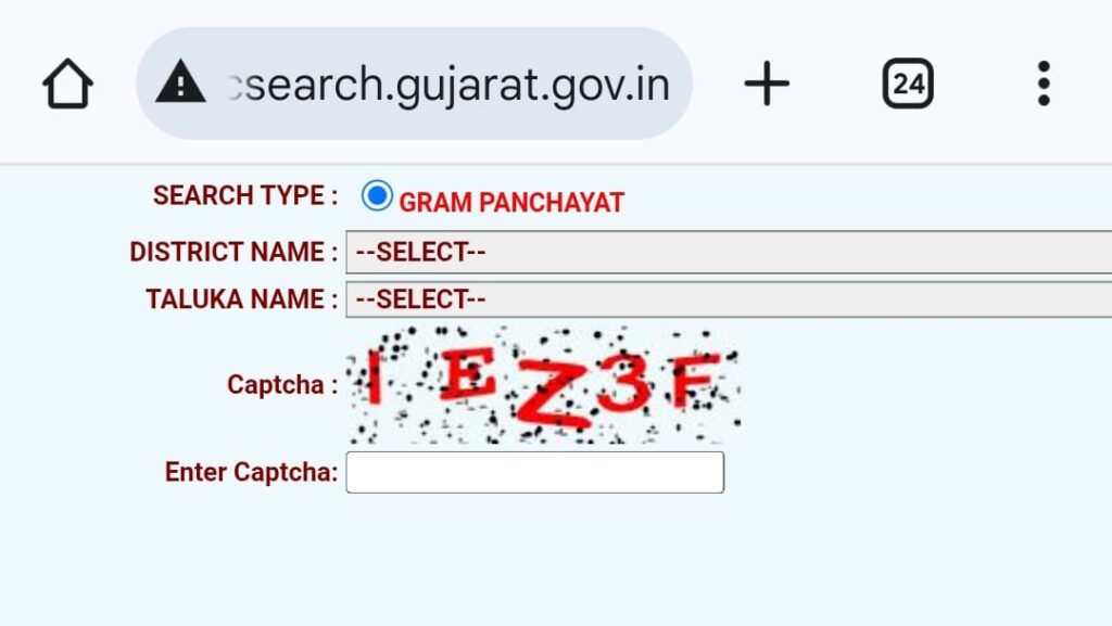 પછી તમારો તાલુકો અને ગામ અથવા વોર્ડ પસંદ કરો. - લખાણ કેપ્ચા ભરો