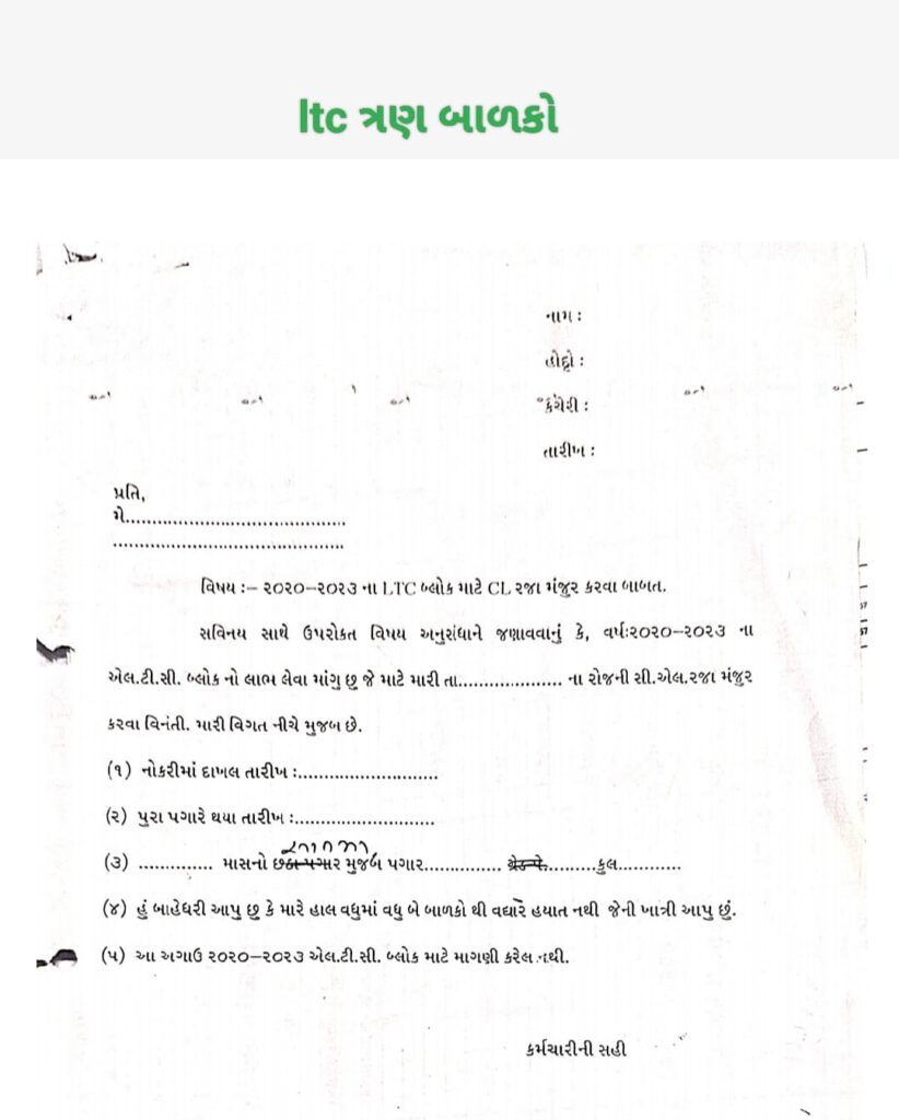 - આ ઉપરાંત જો કોઇ LTC Block બોગવે તો તેઓ LTC Ta Da Form તરિકે પણ આ બીલ ભરીને પોતે એલ.ટી.સી.મા કરેલ પ્રવાસ ખર્ચ માટે ઉપયોગ કરી શકે છે.
